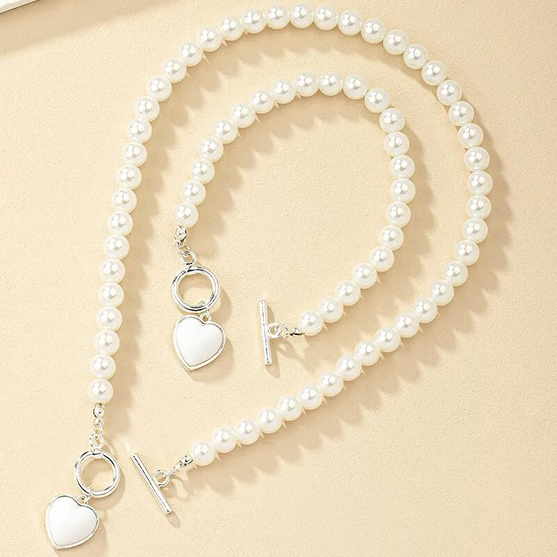 Nome: 2 peças de pérolas simuladas, conjunto de semijoias colar e pulseira