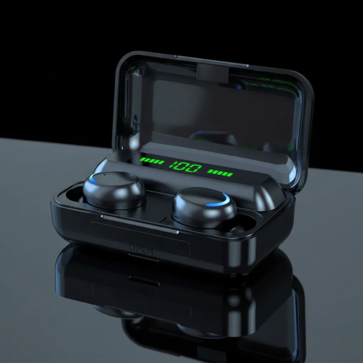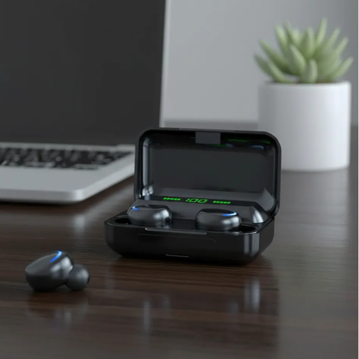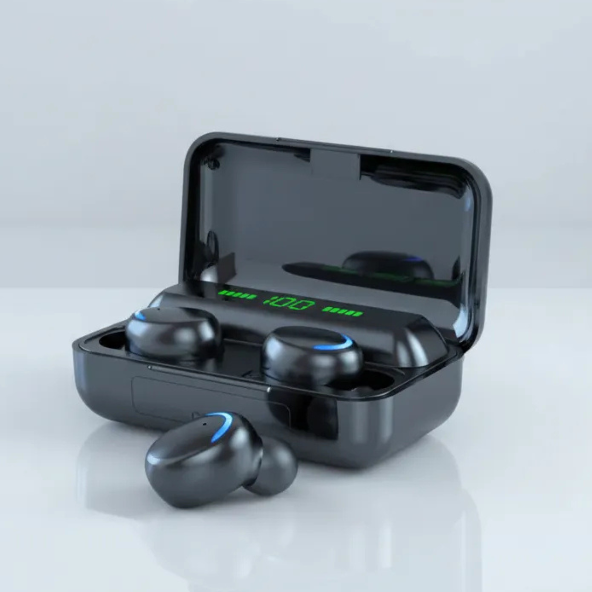 Seu estojo de carregamento conta com display LCD, que mostra o nível de bateria em tempo real, além de funcionar como power bank emergencial, ideal para situações inesperadas.